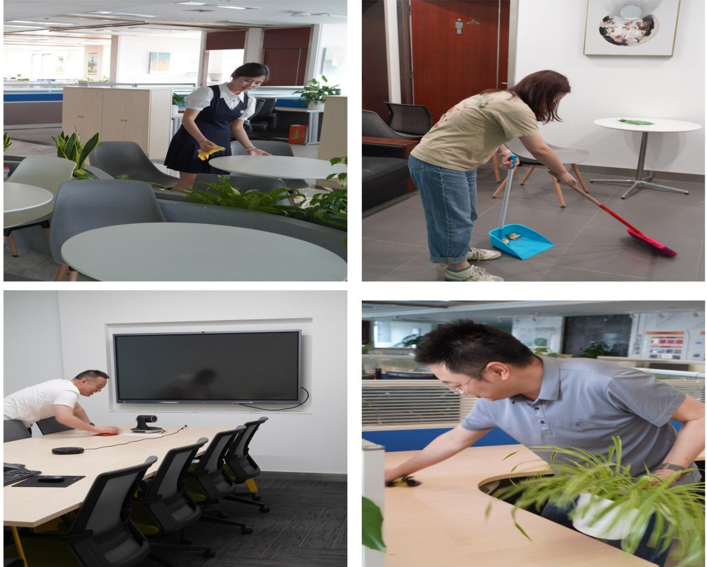 川威大廈總部辦公區(qū):對前臺、會議室、更衣室、茶水間等公共區(qū)域進行清掃整理,大家齊心協(xié)力營造一個干凈整潔的辦公環(huán)境。
