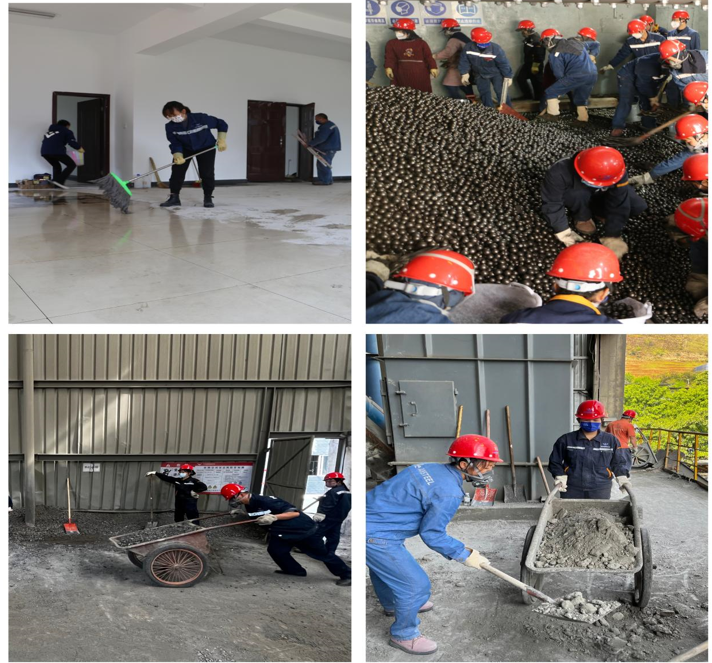 攀西航天、瑞達、瑞峰公司義務(wù)勞動現(xiàn)場:篩選鋼球、清理氨水房后水溝、清堵水泥磨工藝管道、清理員工活動室和熟料堆場,清掃文化長廊等,大家凝聚團隊力量,彰顯無私奉獻精神,為“厲行節(jié)約”打下堅實基礎(chǔ)。