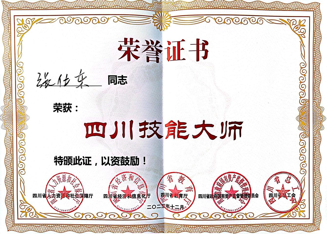 喜訊!星船城瑞達公司高級技師張仕東榮獲 “四川技能大師”稱號